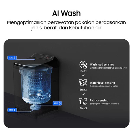 AI Wash- memanfaatkan kecerdasan buatan (AI) untuk menganalisis beban cucian Anda. Mesin cuci ini secara otomatis mendeteksi jenis dan jumlah pakaian menyesuaikan siklus pencucian dan jumlah air yang digunakan. Hal ini memastikan pencucian yang lebih efisien, mengurangi pemborosan air dan energi.